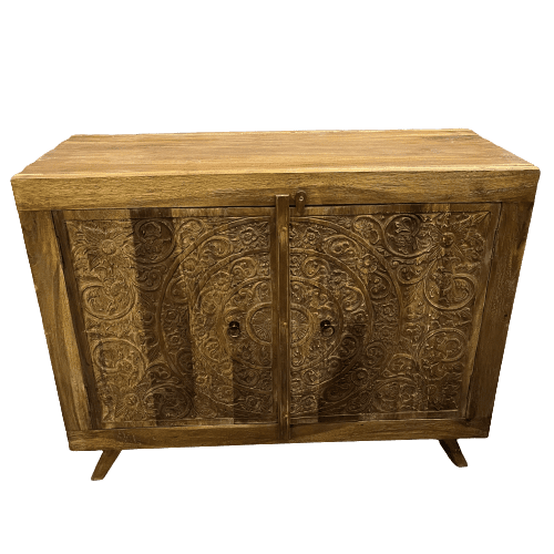 Este aparador tallado dua presenta un diseño único y funcional, creado para quienes buscan piezas especiales que combinen estilo y practicidad. Su construcción asegura una excelente durabilidad para el uso diario.