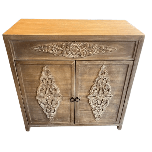 Este aparador tallado eka presenta un diseño único y funcional, creado para quienes buscan piezas especiales que combinen estilo y practicidad. Su construcción asegura una excelente durabilidad para el uso diario.
