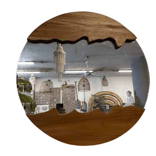 Este espejo madera presenta un diseño único y funcional, creado para quienes buscan piezas especiales que combinen estilo y practicidad.