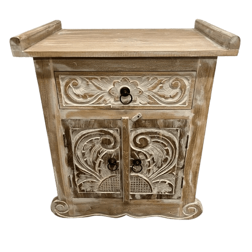 Este mesa nabila tallada presenta un diseño único y funcional, creado para quienes buscan piezas especiales que combinen estilo y practicidad. Su construcción asegura una excelente durabilidad para el uso diario.