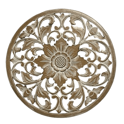 Una imagen de una decoración de pared circular de material resistente.